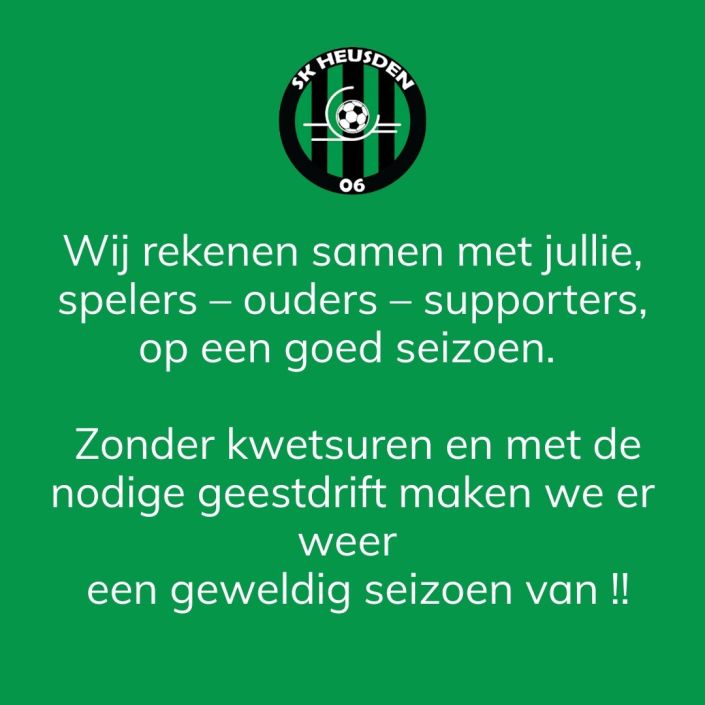 Wij rekenen samen met jullie, spelers – ouders – supporters, op een goed seizoen.