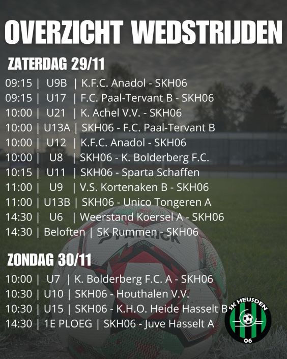 Wedstrijd schema weekend 29 en 30 Novemeber